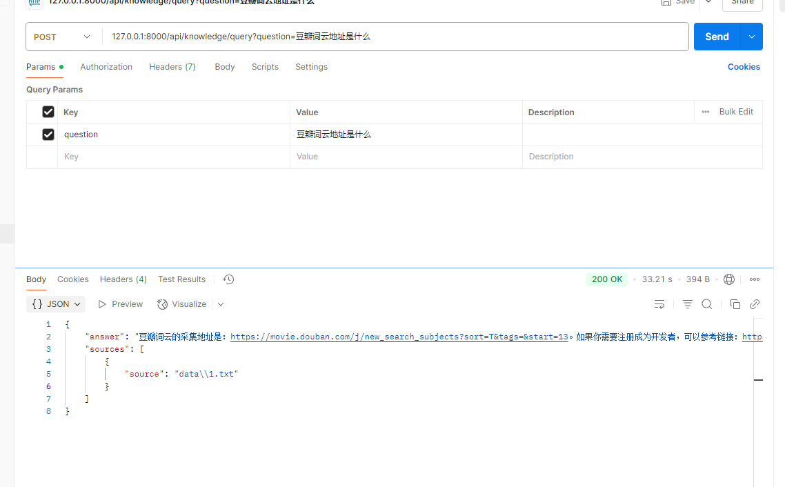curl --location --request POST '127.0.0.1:8000/api/knowledge/query?question=%E8%B1%86%E7%93%A3%E8%AF%8D%E4%BA%91%E5%9C%B0%E5%9D%80%E6%98%AF%E4%BB%80%E4%B9%88'