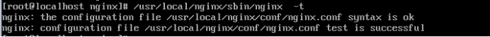 测试是否安装成功命令:/usr/local/nginx/sbin/nginx -t (成功出现如下反馈)