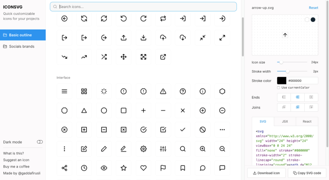 是一个在线可自定义设计SVG图标素材的网站,帮助前端设计师找到想要的图标素材,这些图标素材都是常用图标,可以点击官方提供的素材进行二次设计,同时也可以把设计好的图标导出。