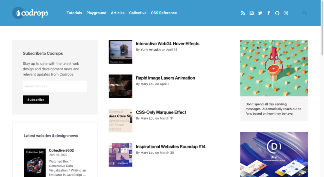 这个网站不断的在更新一些关于 CSS 的技巧优秀的教程和技巧,每天都会更新文章。
