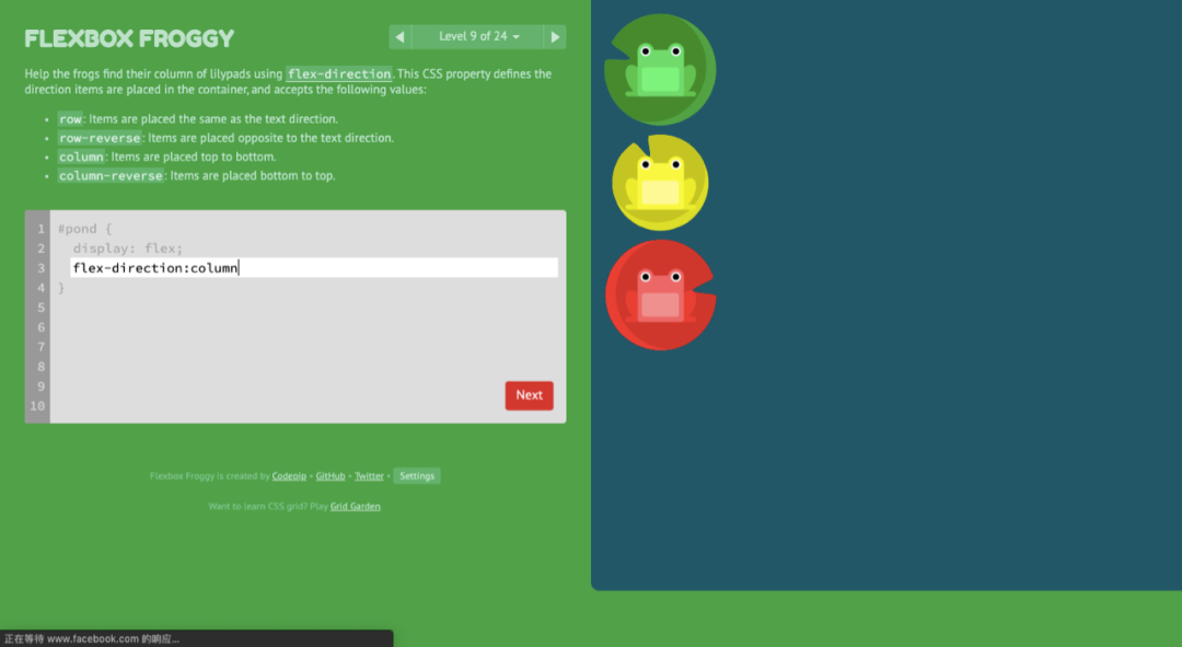 Flexbox Froggy - 学习 Flex 布局的小游戏