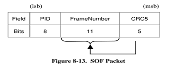 常用的令牌包根据结构如下,SOF包括PID和帧编号,其他如IN包、out包SETUP包则包括了pid、目的地址、目的EP号。