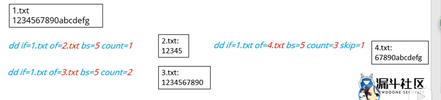 dd if=源文件 of=目标文件名 bs=1 skip=开始分离的字节数