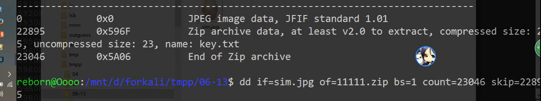 取值zip,是从22895-23046,选择前面数一共23046位,skip跳过前面22895位,直接得到zip文件
