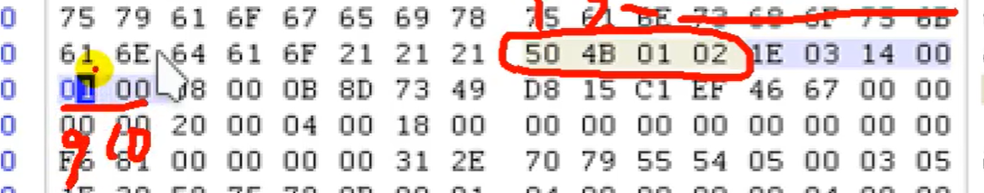360解压,直接进行解压,先找到504B0101,再往后数到第九第十个字符(两位数字一字符)50也算入