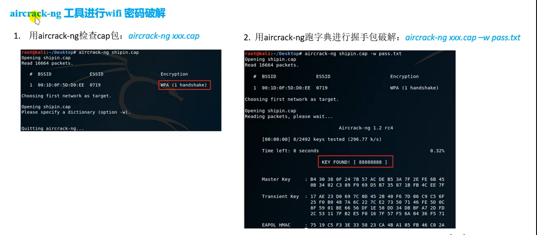1.用aircrack-ng检查cap包 :aircrack-ng xxx.cap
