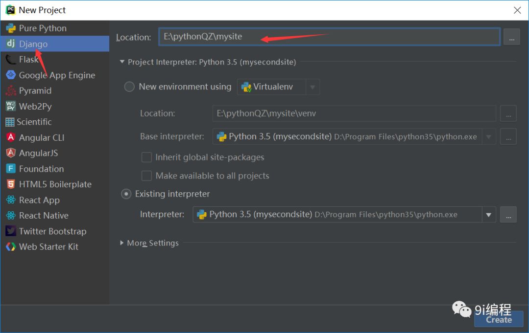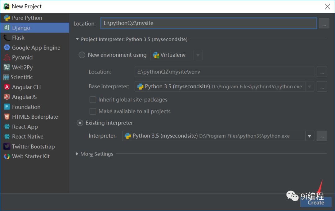 1、通过pycharm创建Django项目