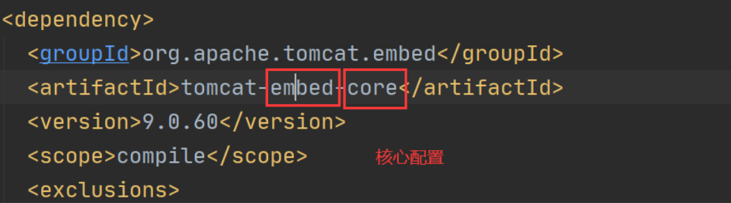 内嵌的tomcat核心,我们现在启动起来这个服务器,之所以能用,就是因为这里面内嵌了一个tomcat服务器,程序里面包含了一个服务器?服务器启动起来不是要把程序扔到服务器里面吗?现在怎么把服务器扔到程序里面去了?