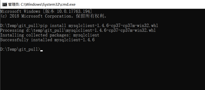 五、再次执行 pip install ***,像我这里的***就是mysqlclient,问题解决