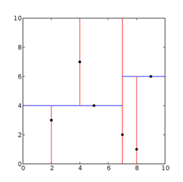 二维就有一些复杂了 理论上我们应该用某一维度将点集分开