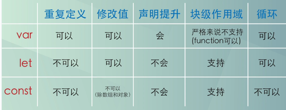 3.const定义常量,只能在块作用域里访问,也不能跨函数访问,使用时必须初始化(即必须赋值),而且不能修改(指向的对象,即内存地址不能修改,但是能修改里面的属性)