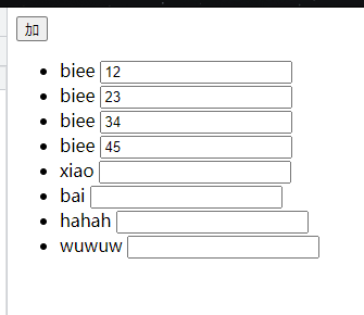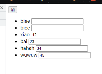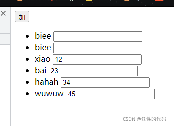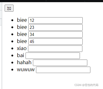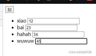 会发现没有实现一一对应关系:原因——input在生成的时候,input使用的是数组的1,2,3,4下标的index,所以它会在上面,此时要想一一对应,得input这里需要使用数组项的唯一标识,这样不管数组加了多少元素,input使用的index和数组项的唯一标识都会一一对应。