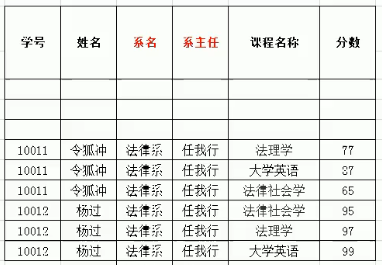 如图四所示,我们删除学号为10010的数据,会发现系名和系主任不会被删除,则就符合第三范式;