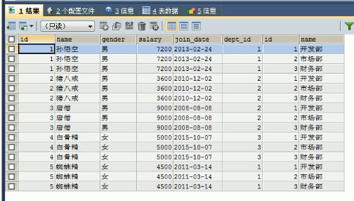 我们发现图五有了很多的有很多的重复数据,这时候需要清除这些重复数据,(去笛卡尔积),下面将会介绍如何去掉重复无用数据;