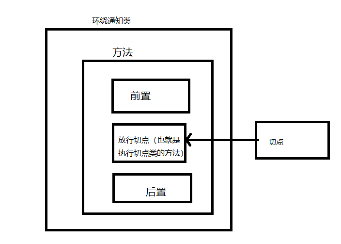 环绕通知是指在在一个类中引入一个切点,在这个切点中前面实现什么,后面执行什么,解析图如下所示(学过JDK代理好理解,和代理差不多原理,就是把前置通知和后置通知写到一个通知类中)。