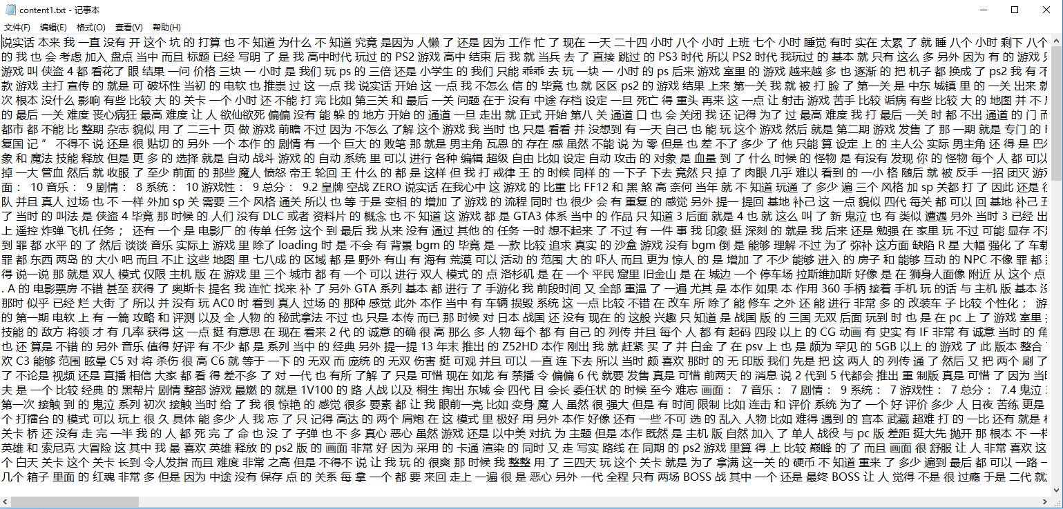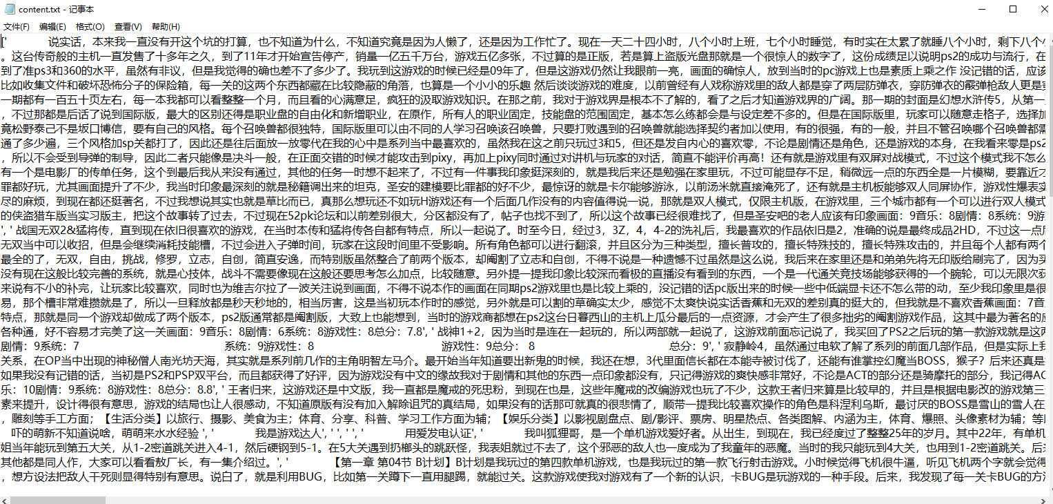 以下是我爬取的文本内容: