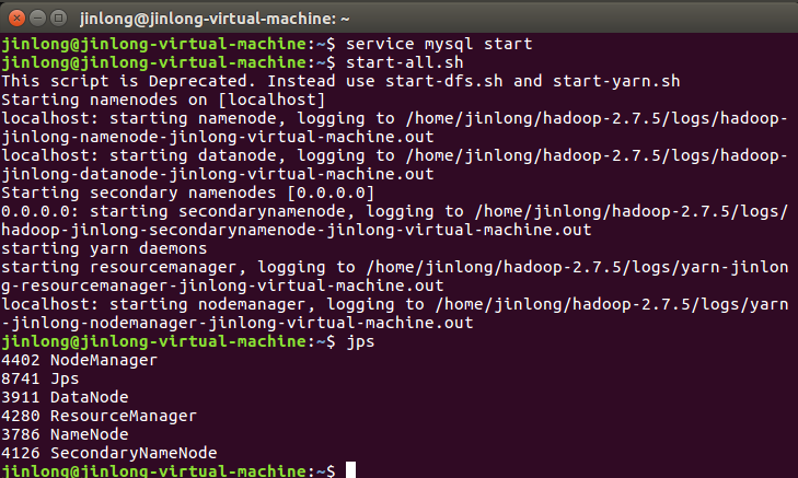 先启动mysql服务和hadoop服务: