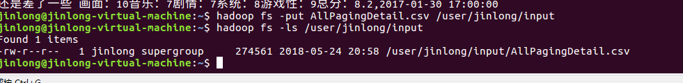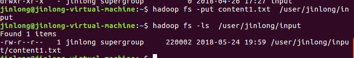 将其复制到HDFS的/user/jinlong/input目录下