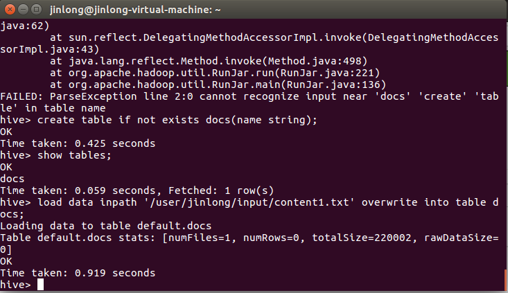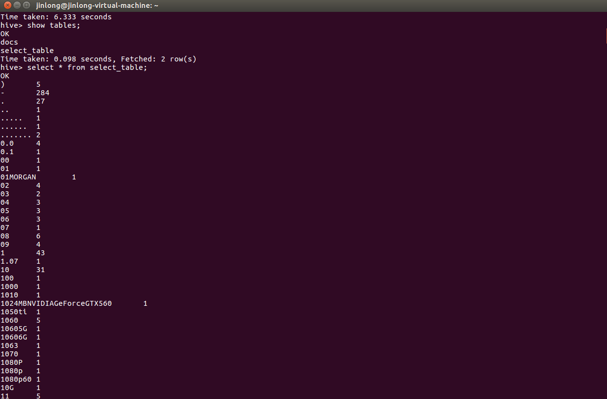 一、用Hive对爬虫大作业产生的文本文件(或者英文词频统计下载的英文长篇小说)进行词频统计。