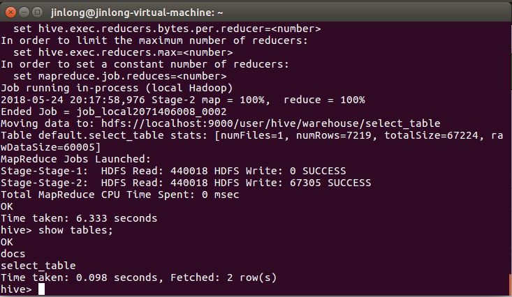 创建select_table表,并将content1.txt的数据存入: