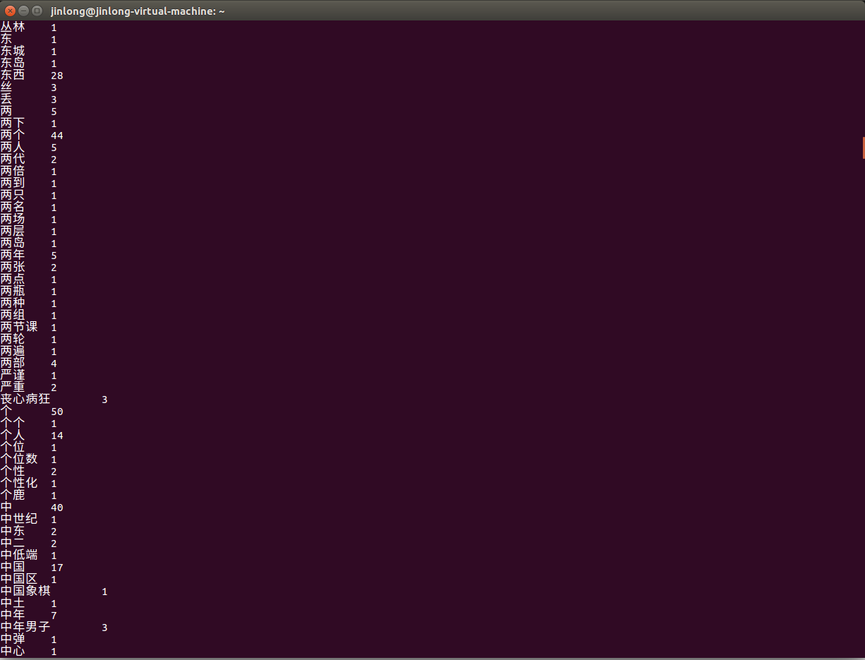 所以我下要在windows平台先把爬取到的文本进行分词,然后再在虚拟机里进行词频统计