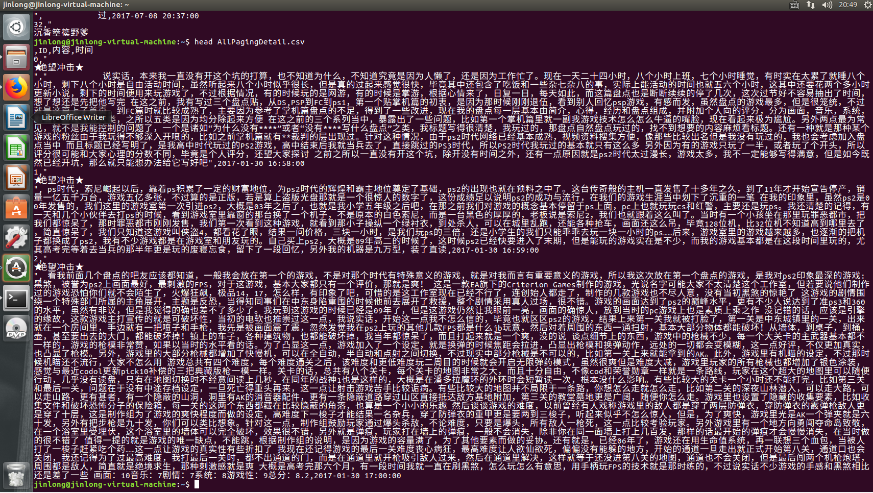 重新将爬取的数据拿到LINUX中进行处理: