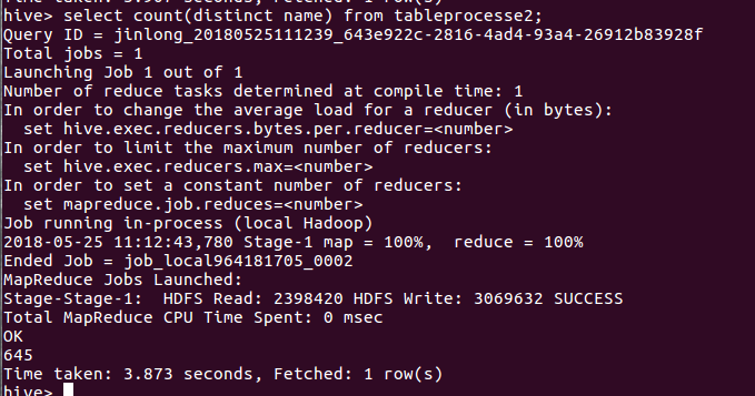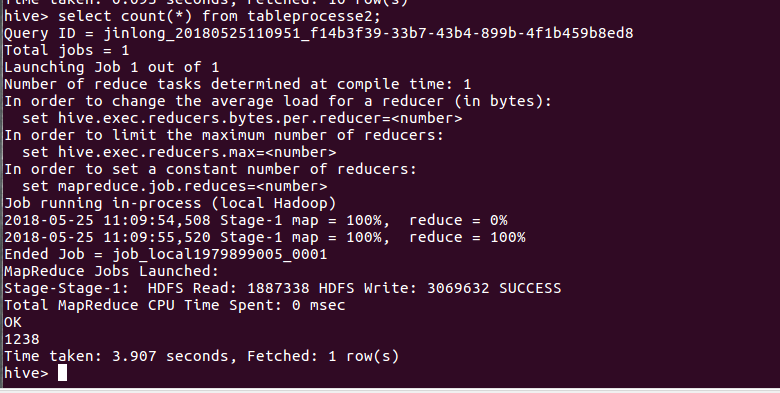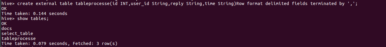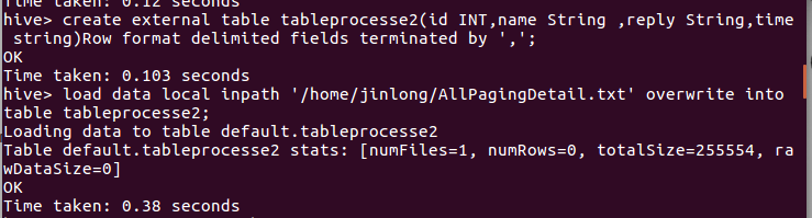 创建表tableprocesse2,并将生成的txt文件导入到该表: