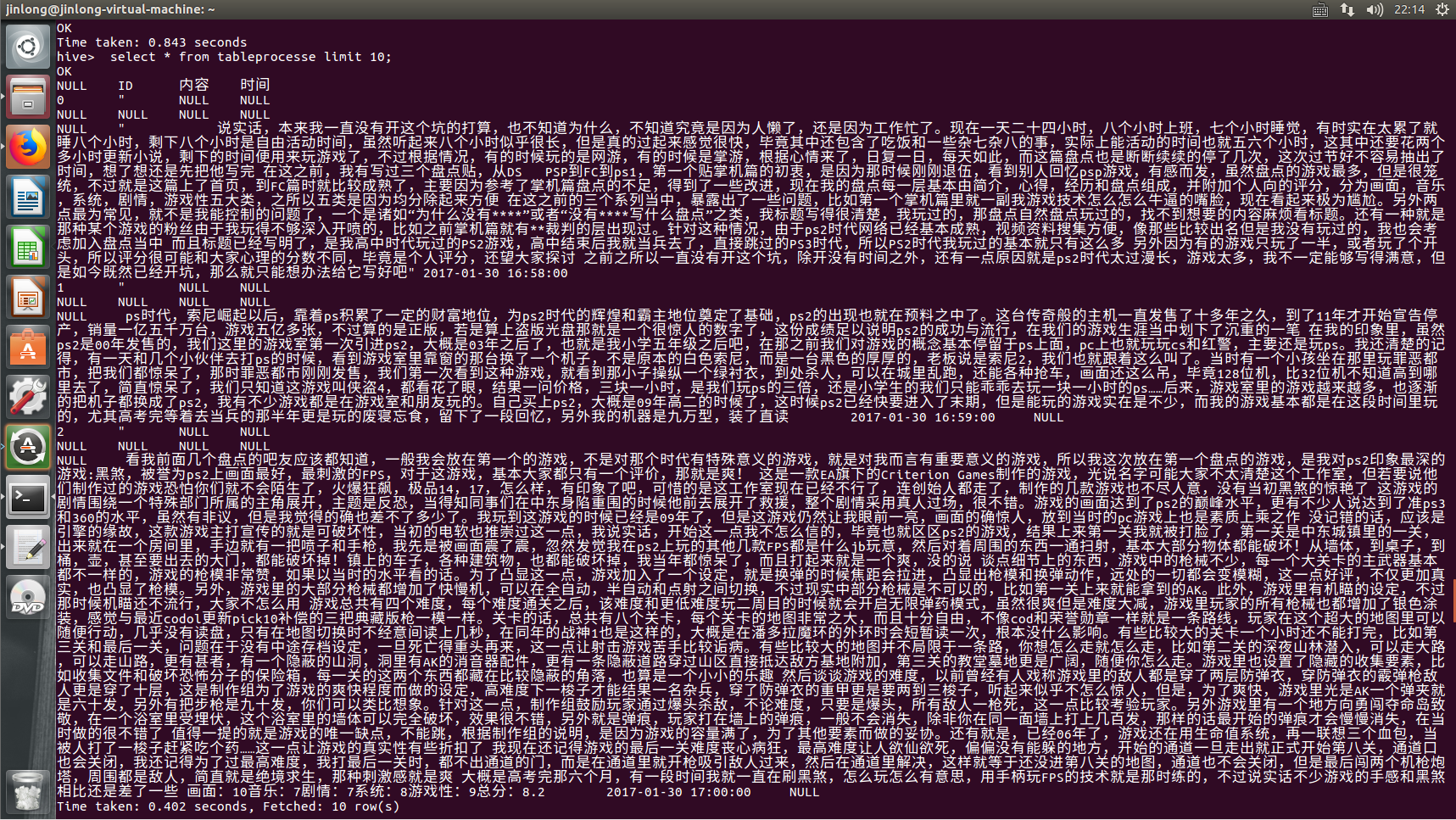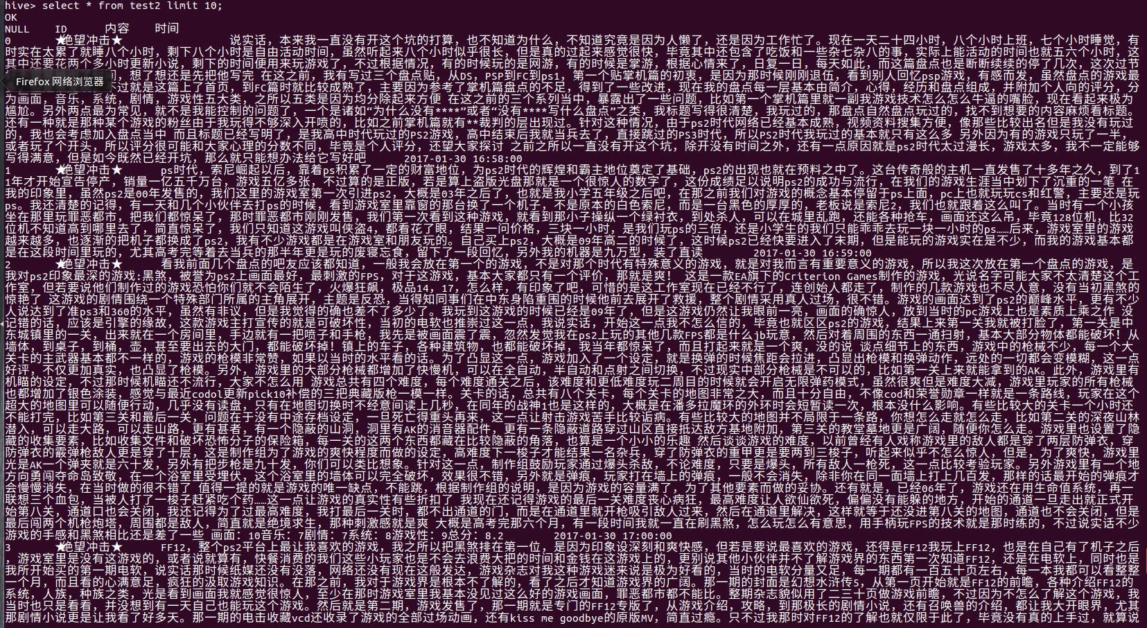 二、用Hive对爬虫大作业产生的csv文件进行数据分析,写一篇博客描述你的分析过程和分析结果。