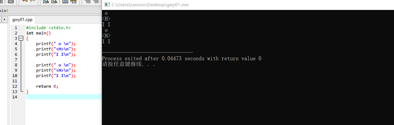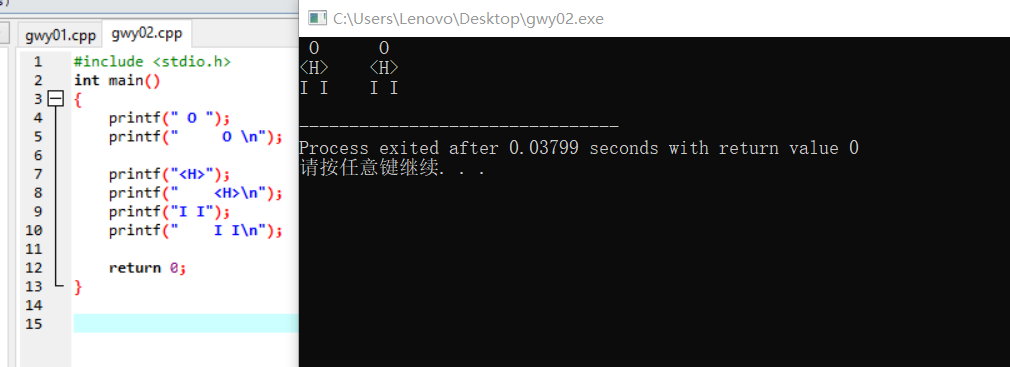printf("I I\n");