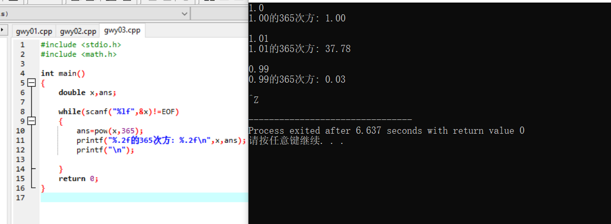 printf("%.2f的365次方: %.2f\n",x,ans);