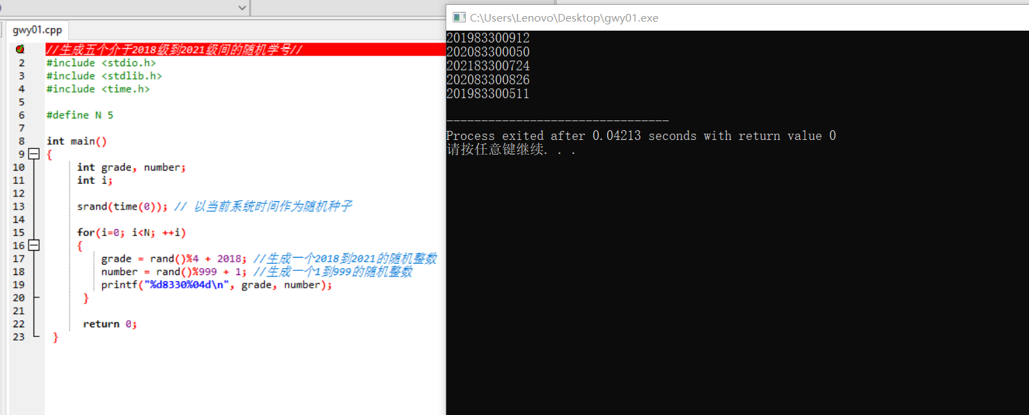 grade = rand()%4 + 2018; //生成一个2018到2021的随机整数