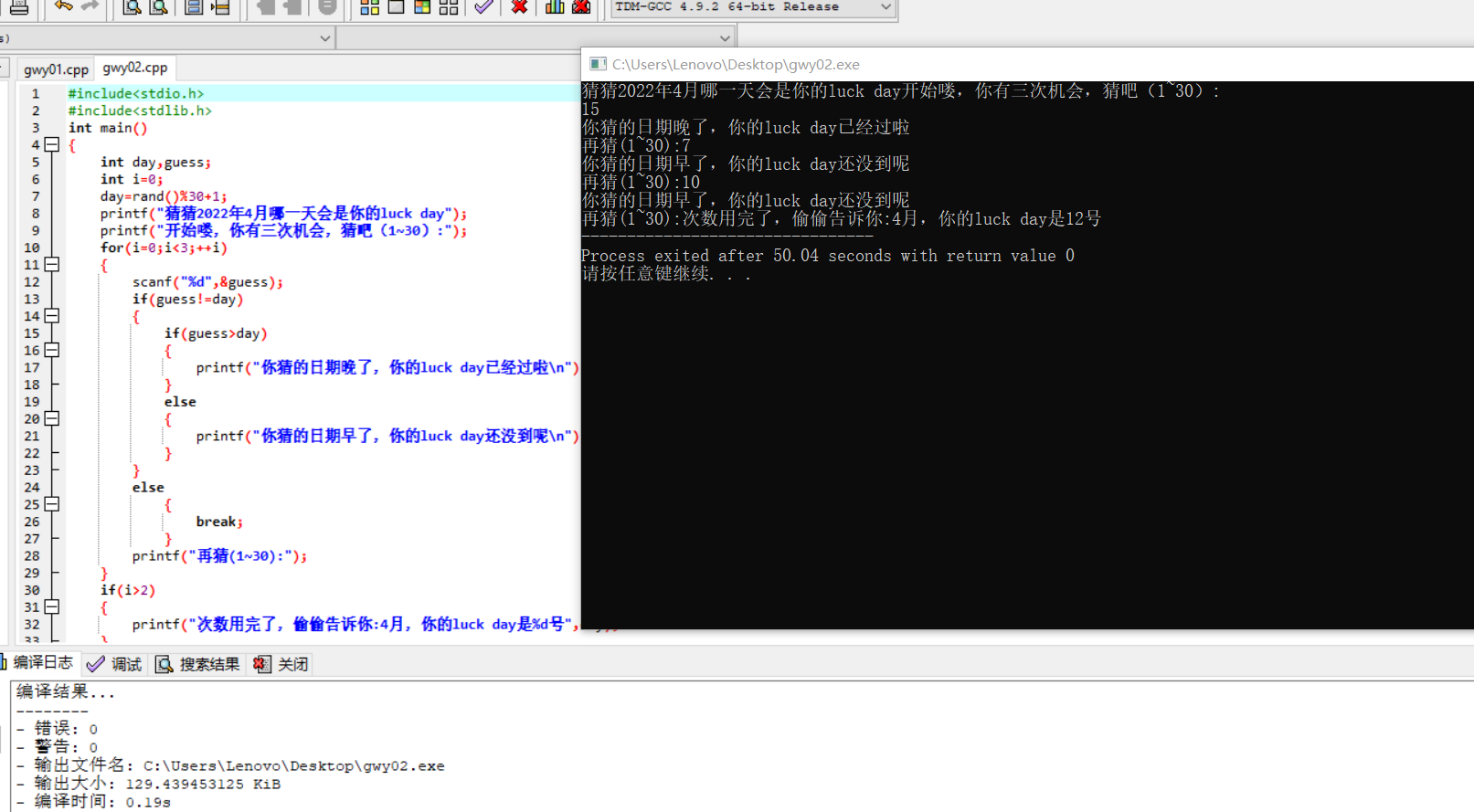 printf("次数用完了,偷偷告诉你:4月,你的luck day是%d号",day);