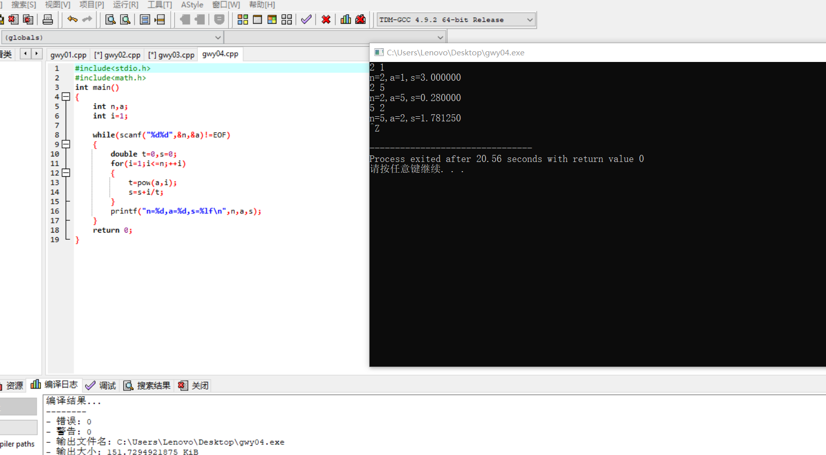 printf("n=%d,a=%d,s=%lf\n",n,a,s);