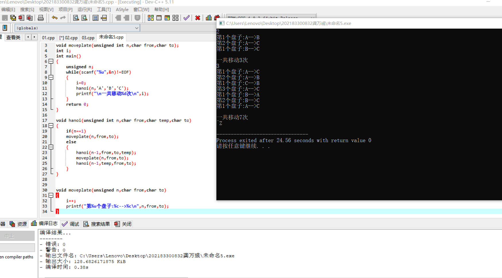 printf("第%u个盘子:%c-->%c\n",n,from,to);