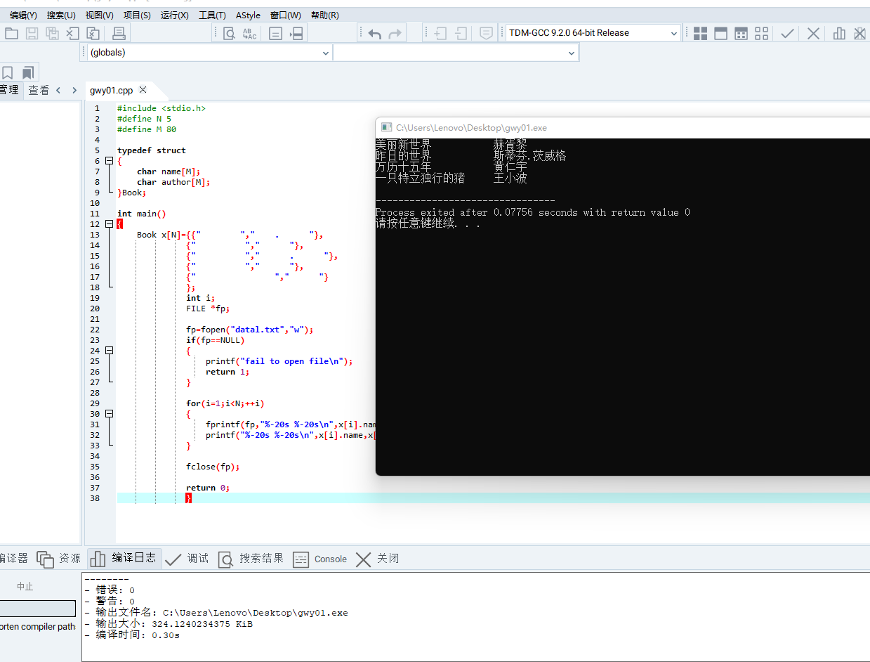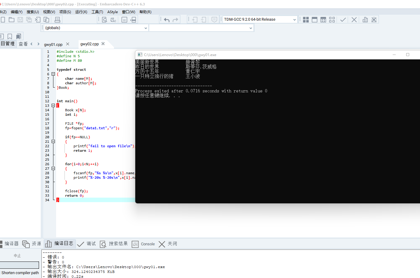 printf("%-20s%-20s\n", x[i].name, x[i].author);