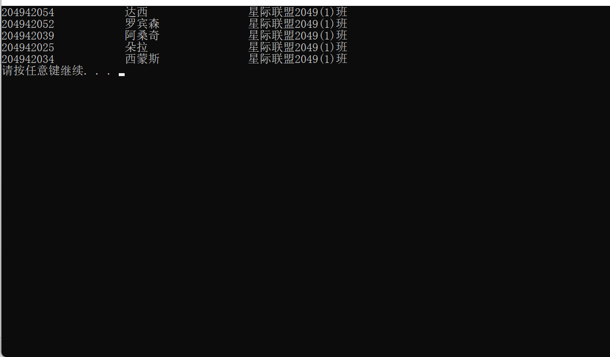fprintf(fout, "%-20s %-20s %-20s\n", s[j].xuehao, s[j].name, s[i].classm);