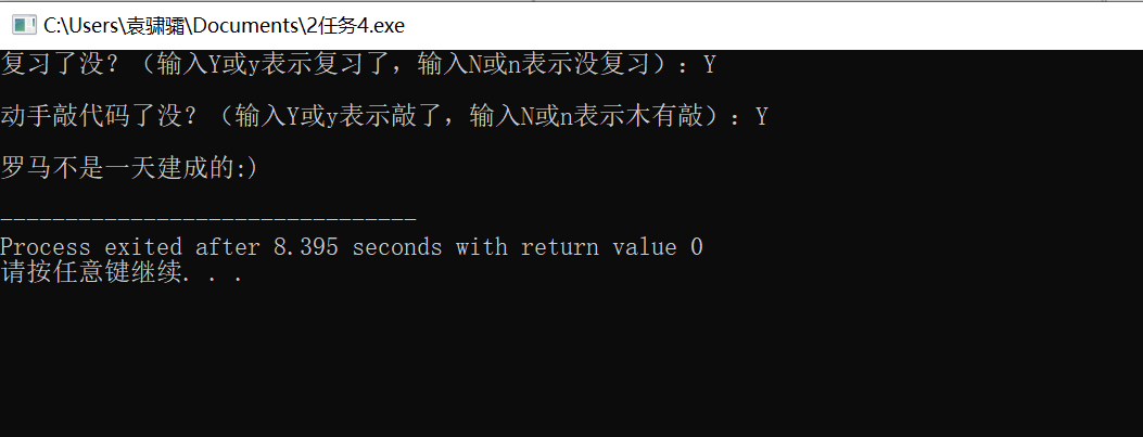 printf("复习了没?(输入Y或y表示复习了,输入N或n表示没复习):");