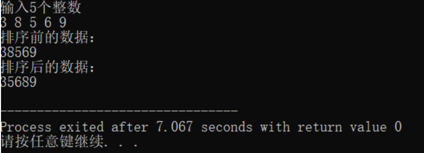 printf("排序后的数据:\n");