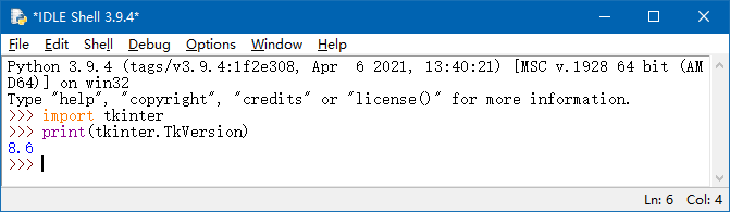 学习之前先了解一下自己的tkinter版本。在Python的IDLE Shell行命令里输入: