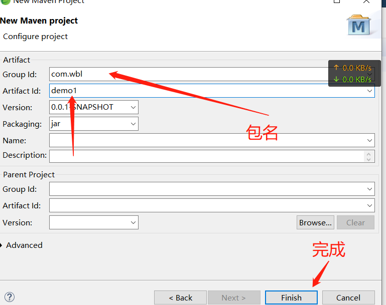 2、点击next下一步,打钩,输入包名和项目名称