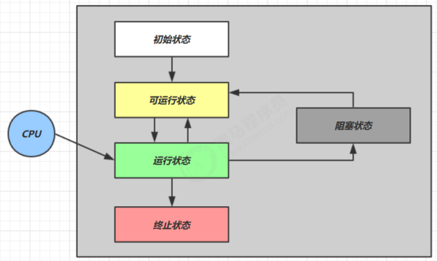 运行状态:获取了CPU时间片,线程在运行中的状态,如果CPU的时间片用完,线程会从运行状态转换为就绪状态,这时候会有一个线程上下文的切换
