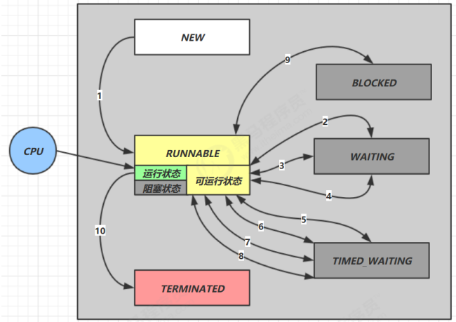 - NEW:线程刚被创建,但是还没有调用 start() 方法