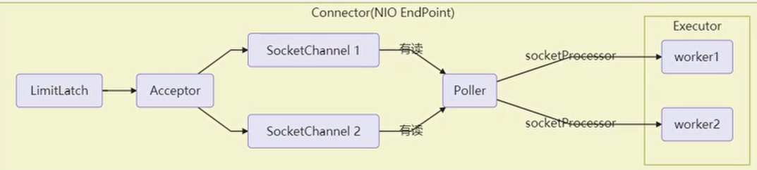 - 一旦有可读的IO事件被监听到,就封装一个任务对象socketProcessor,提交给executor线程池处理