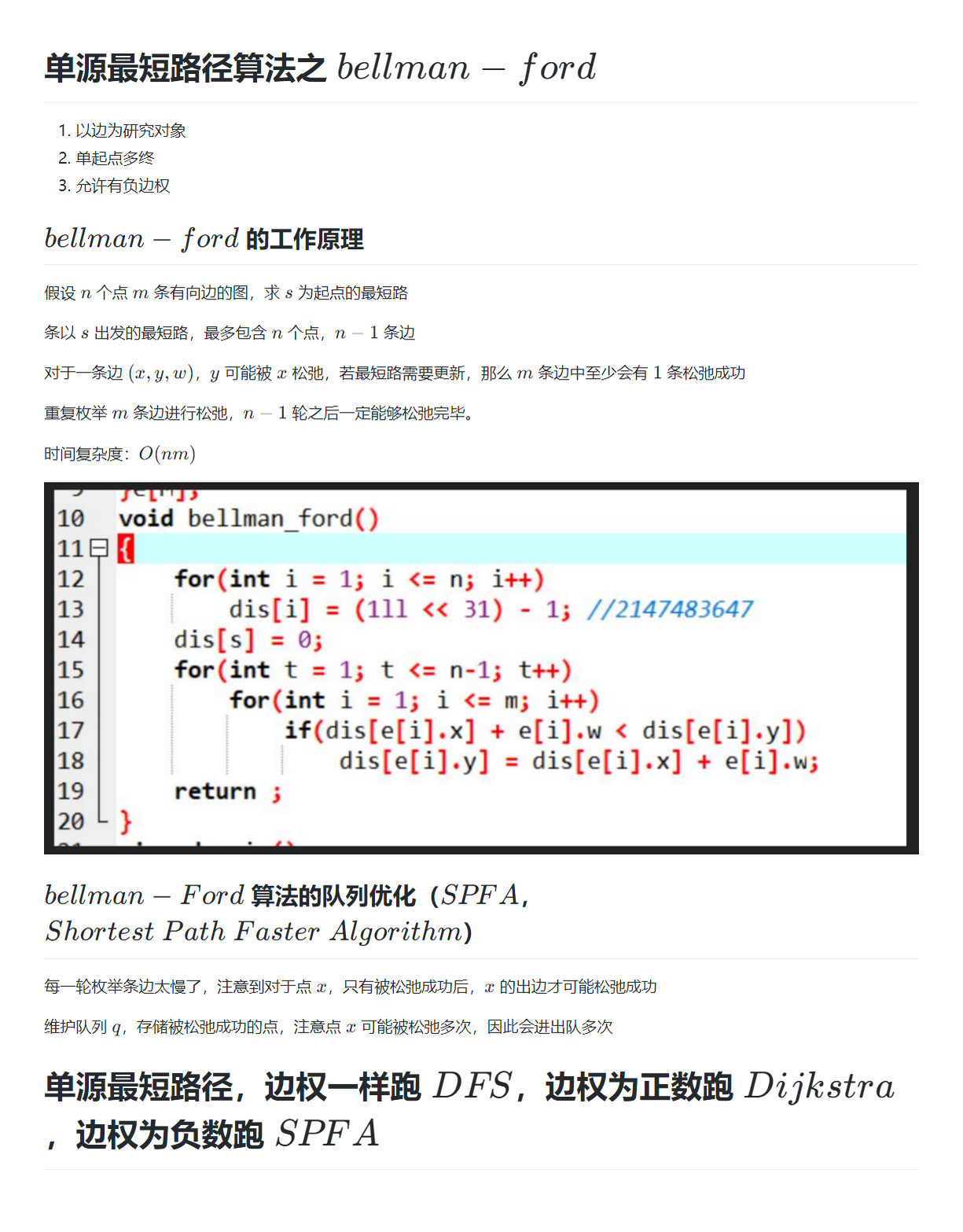重复枚举 \(m\) 条边进行松弛,\(n-1\) 轮之后一定能够松弛完毕。