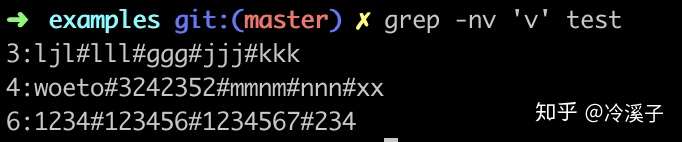 grep -nv 'v' test 查找不包含字符 v 的行数