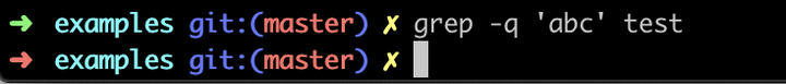 grep -q 'abc' test 静默执行。不会输出任何信息,如果命令运行成功返回0,失败则返回非0值。一般用于条件测试