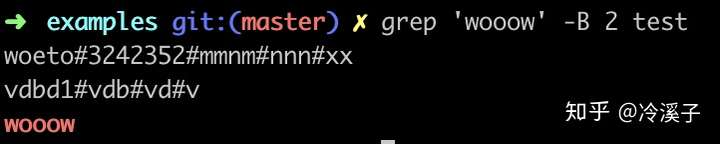 grep 'wooow' -B 2 test 输出匹配结果行的前 2 行