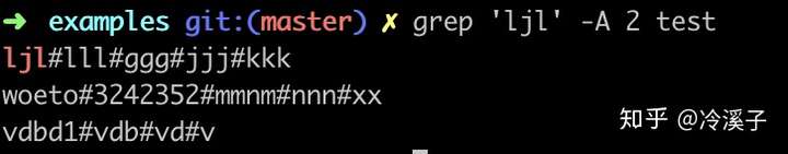 grep 'ljl' -A 2 test 输出匹配结果行的后 2 行