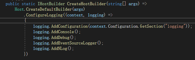 logging.AddConfiguration(context.Configuration.GetSection("logging"));