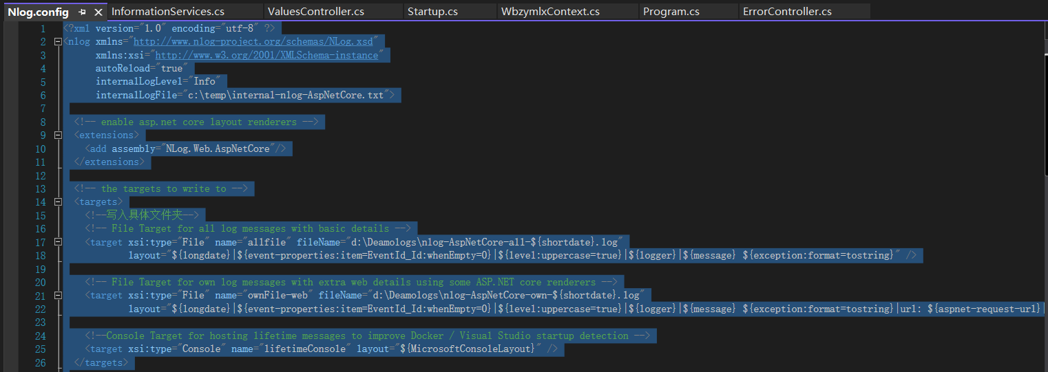 <target xsi:type="File" name="ownFile-web" fileName="d:\Deamologs\nlog-AspNetCore-own-${shortdate}.log"